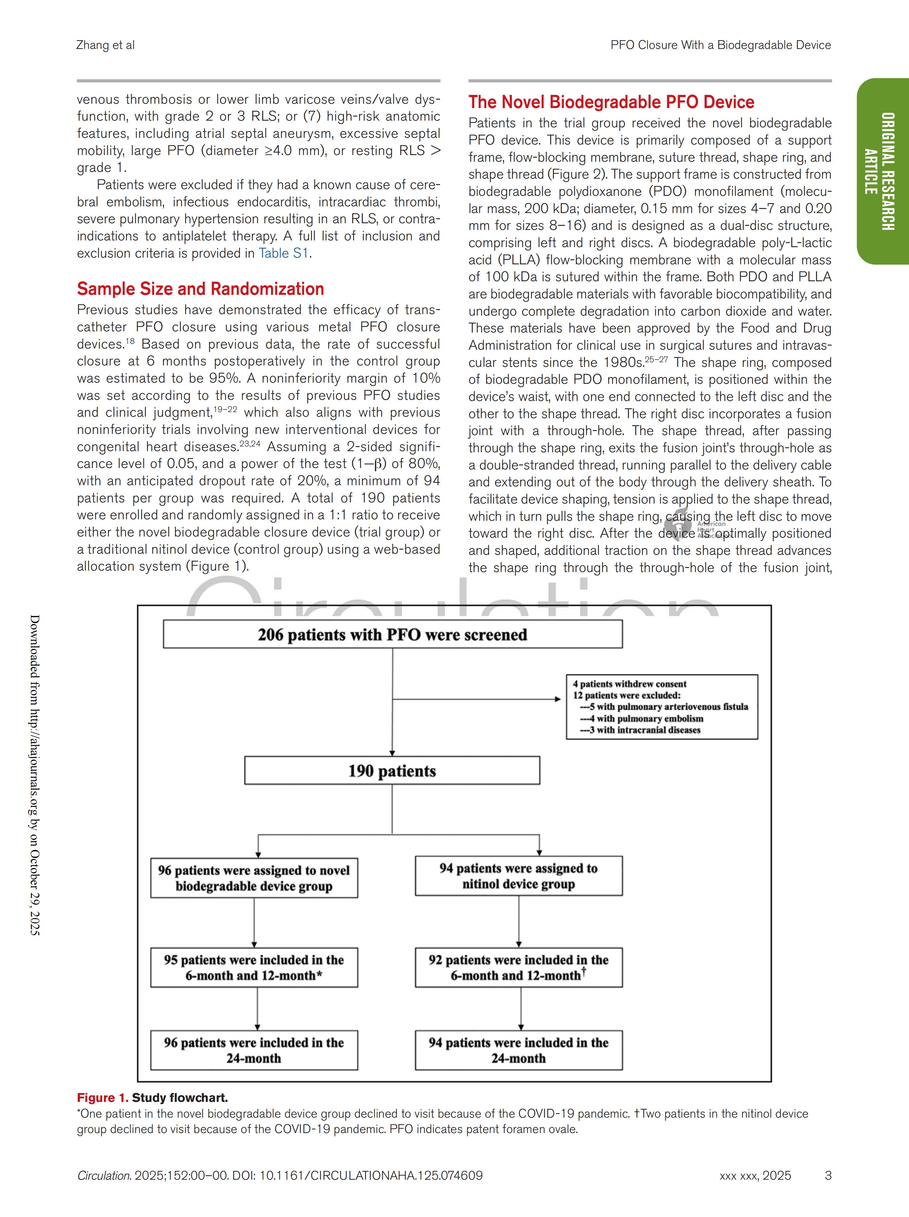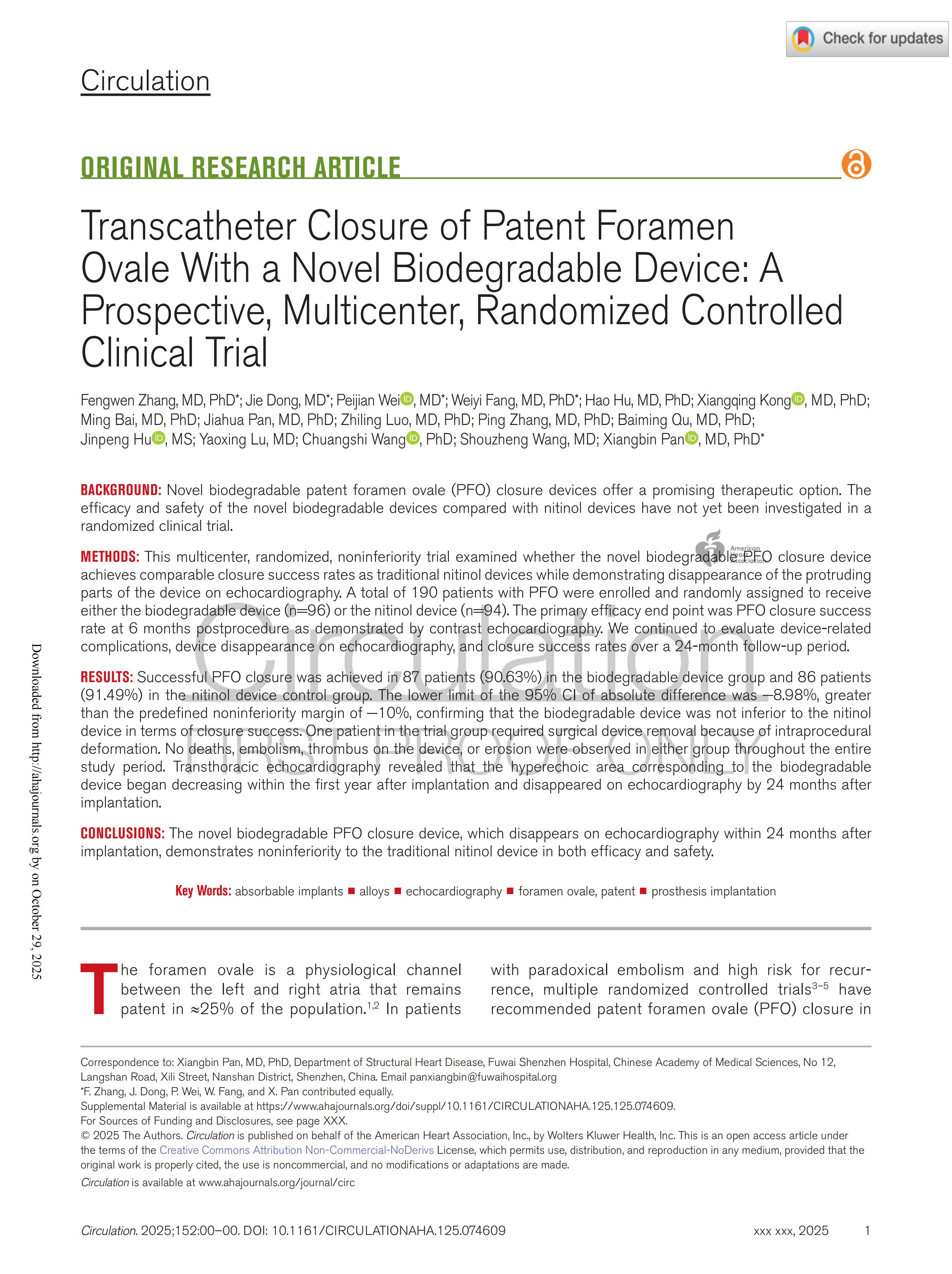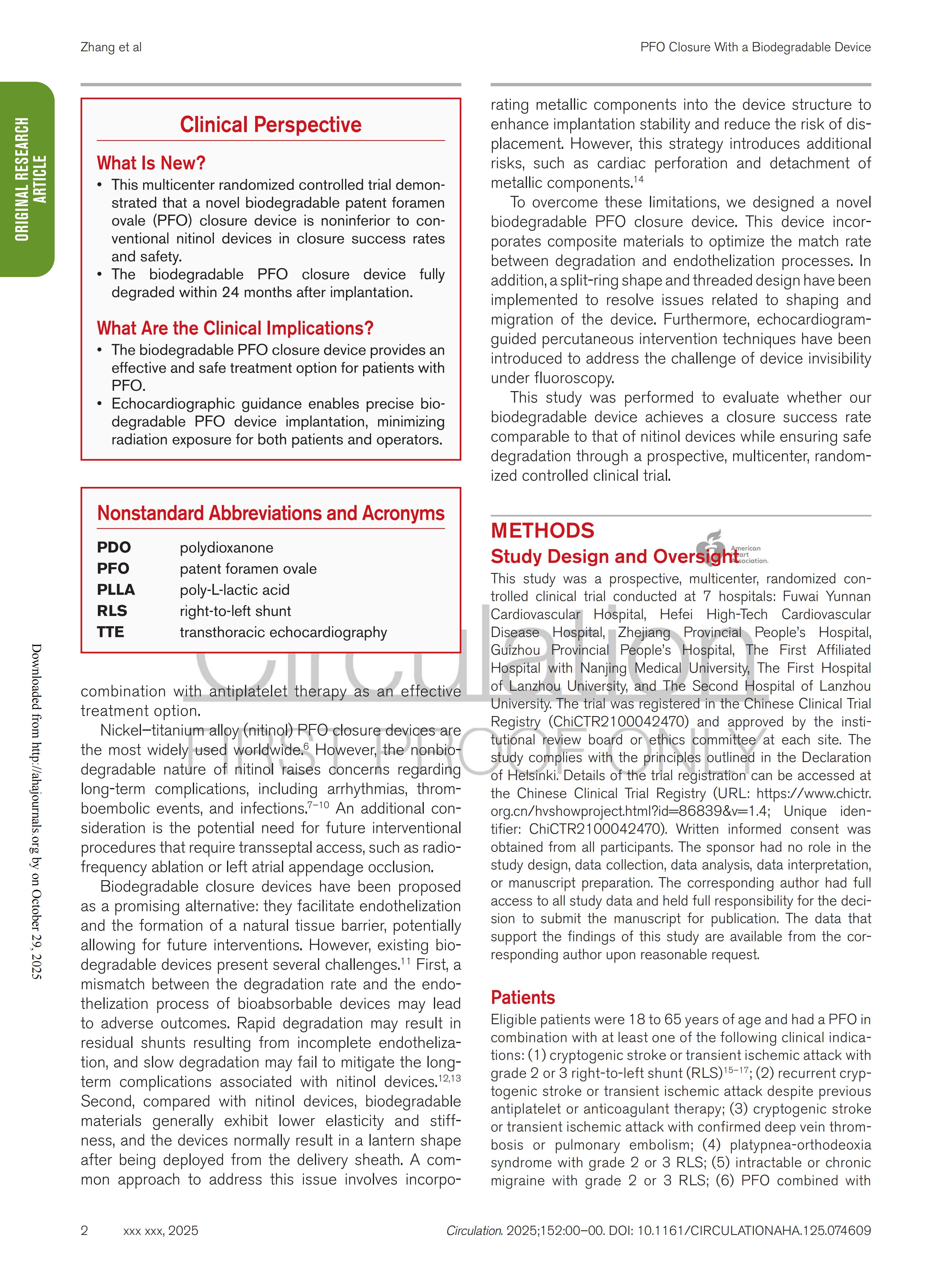 Transcatheter Closure of Patent Foramen Ovale With a Novel Biodegradable Device: A Prospective, Multicenter, Randomized Controlled Clinical Trial